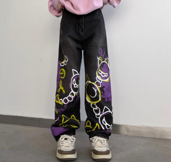選べる 3サイズ展開 2023年新品登場 大きいサイズ パンツロングパンツボトムス デニム ジーパン男女兼用メンズガールズストリート韓国個性ブラックパープルホワイトキャラクター可愛い太い