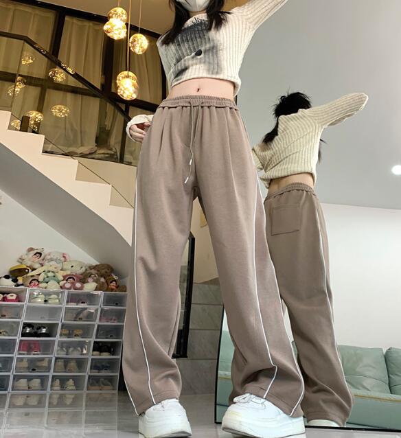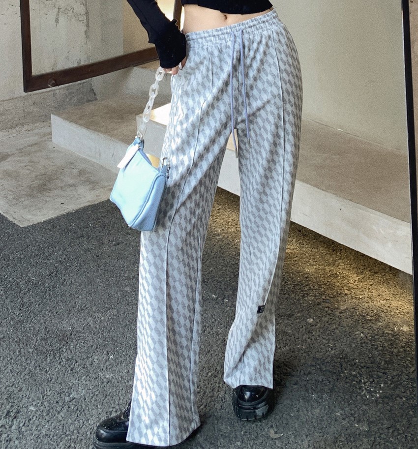 センタープレススリットチェックスウェットパンツズボンボトムスジャージ服下グレーゴムハイウエストロングストレートダンス衣装ヒップホップHIPHOPレディースガールズストリート奇抜派手韓国おしゃれ運動部屋