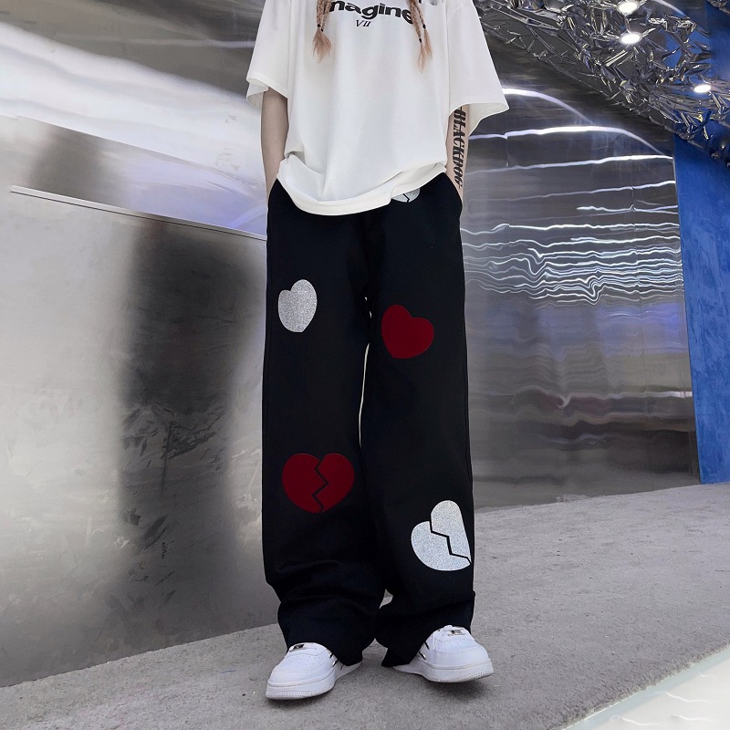 パンツ ズボン 切り替え 体型カバー 大きいサイズあり ユニセックス 男女兼用 原宿系ファッション 韓国風ダンス 衣装 ヒップホップ 個性 奇抜 かわいい 青文字系 ボトムス レディース