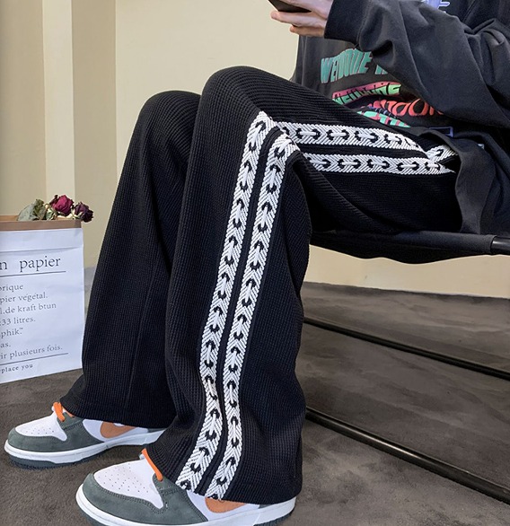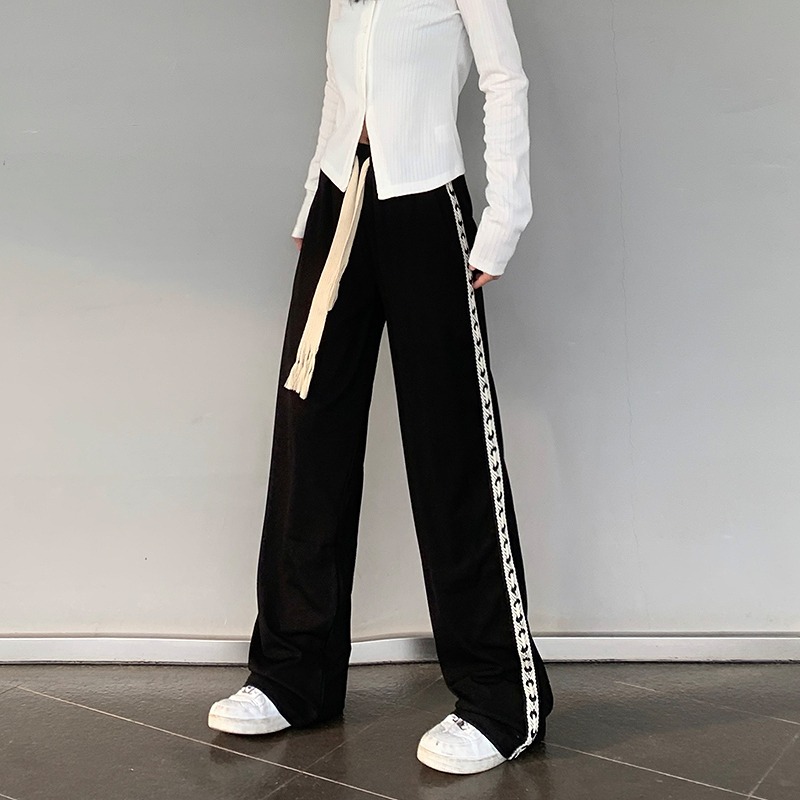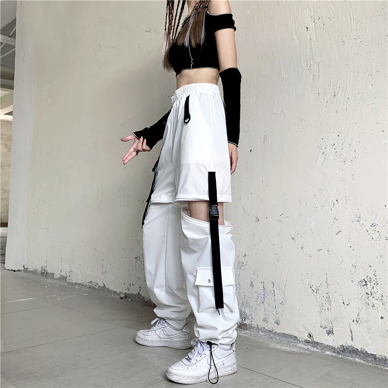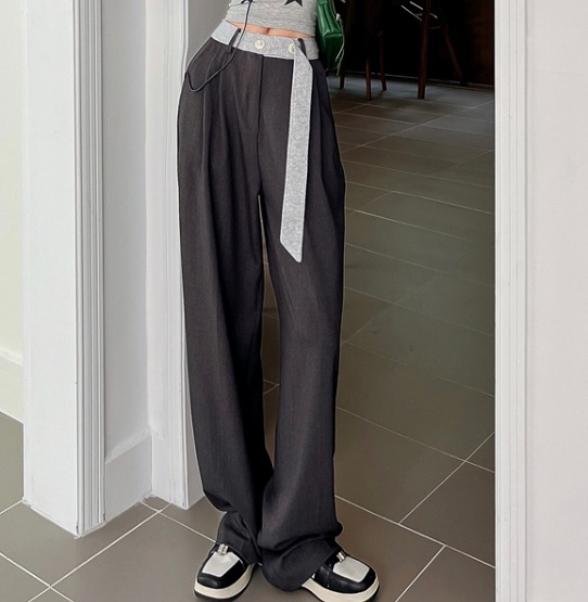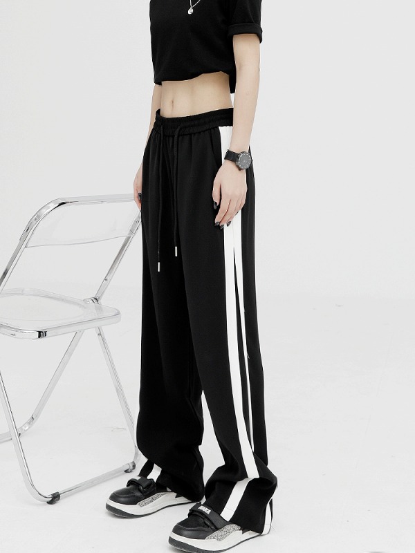 パンツ ズボン スリット 切り替え バイカラー 配色 体型カバー 大きいサイズあり 原宿系ファッション 韓国風ダンス 衣装 ヒップホップ 個性 奇抜 かわいい 青文字系 ボトムス レディ