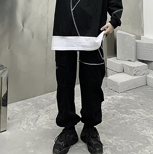 パンツ ズボン 切り替え スリム 無地 ユニセックス 男女兼用 原宿系ファッション 韓国風ダンス 衣装 ヒップホップ 個性 奇抜 かわいい 青文字系 ボトムス レディース 女