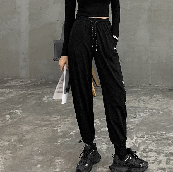 パンツ ズボン 切り替え バイカラー 配色 スリム ユニセックス 男女兼用 原宿系ファッション 韓国風ダンス 衣装 ヒップホップ 個性 奇抜 かわいい 青文字系 ボトムス レディース 女