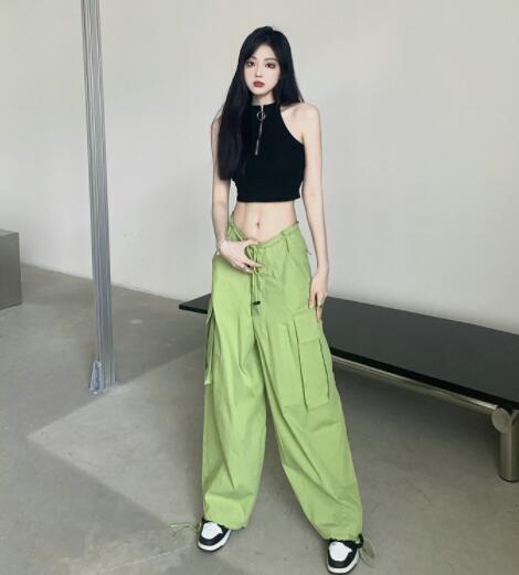 ワイドカーゴパンツズボンボトムスパンツハイウエスト絞りロングジョガーパンツ無地シンプル大きいサイズゆったりだぼだぼダンス衣装ヒップホップレディースメンズストリート奇抜派手