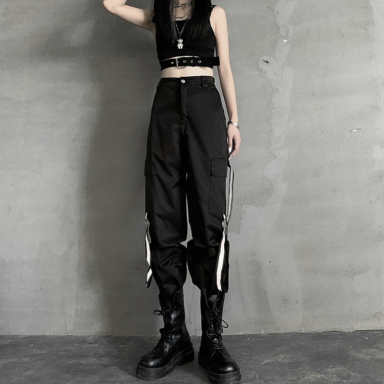 パンツ ズボン ハイウエスト 切り替え 体型カバー 無地 原宿系ファッション 韓国風ダンス 衣装 ヒップホップ HIPHOP 個性 奇抜 かわいい 青文字系 ボトムス レディース 女