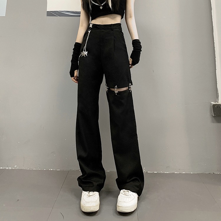 パンツ ズボン ハイウエスト 切り替え 体型カバー 無地 原宿系ファッション 韓国風ダンス 衣装 ヒップホップ 個性 奇抜 かわいい 青文字系 ボトムス レディース 女