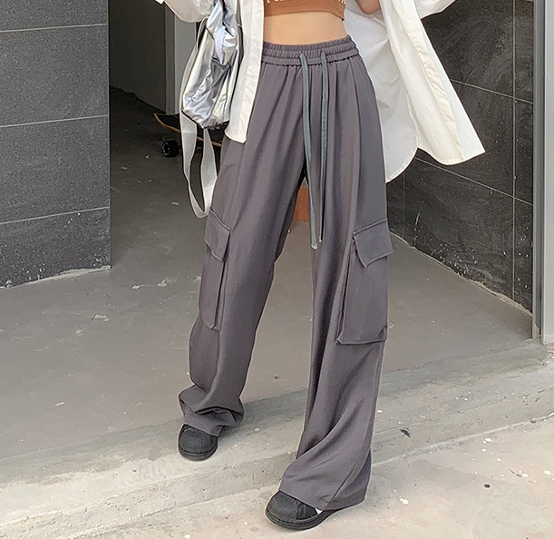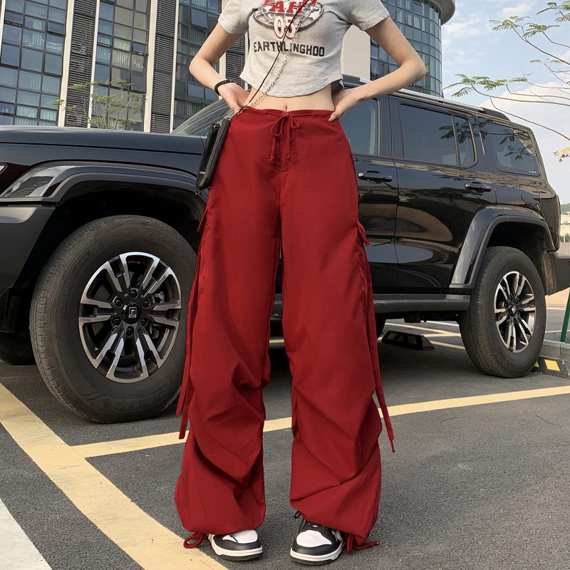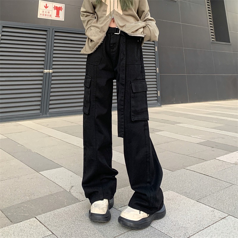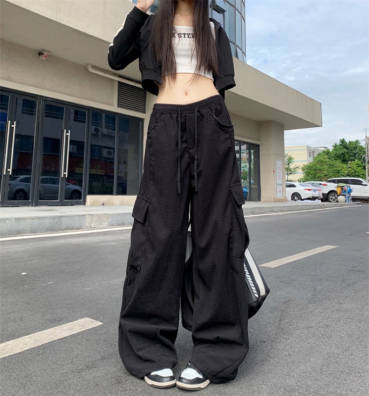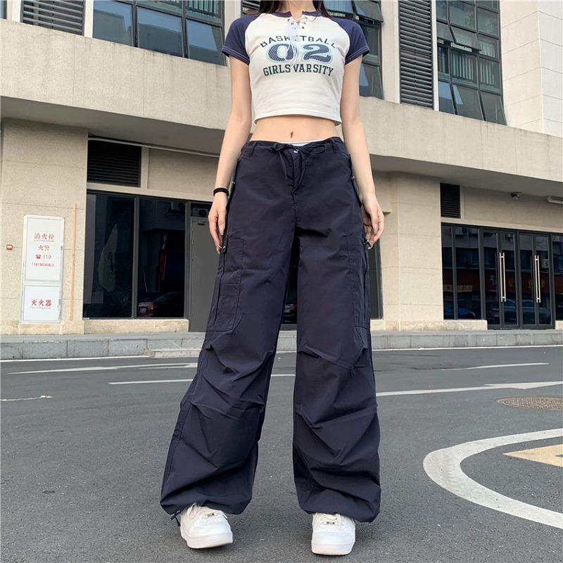 全2色 カーゴパンツ ミリタリーパンツ ジョガー ズボン ハイウエスト 切り替え 体型カバー ガウチョパンツ ワイド バギーパンツ レトロ調 原宿系ファッション 韓国風 ダンス 衣装 ダンサー ヒップ