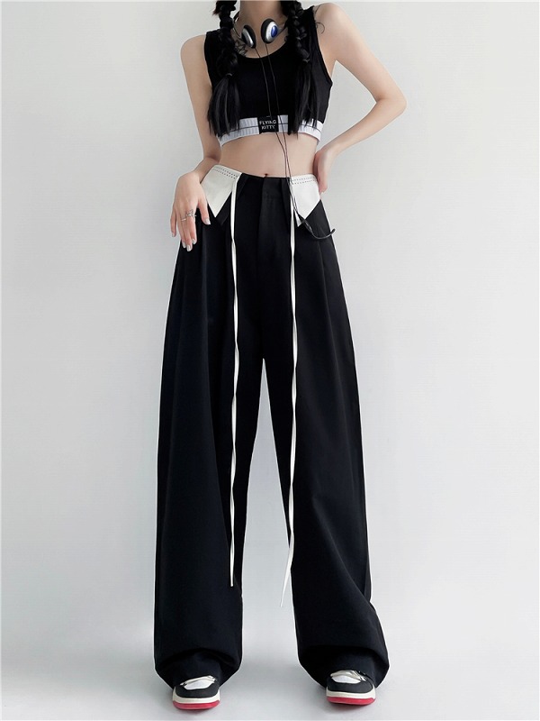 パンツ ズボン ハイウエスト 切り替え バイカラー 配色 体型カバー 原宿系ファッション 韓国風 ダンス 衣装 ダンサー ヒップホップ HIPHOP 個性 奇抜 かわいい 青文字系 ボトムス レディー