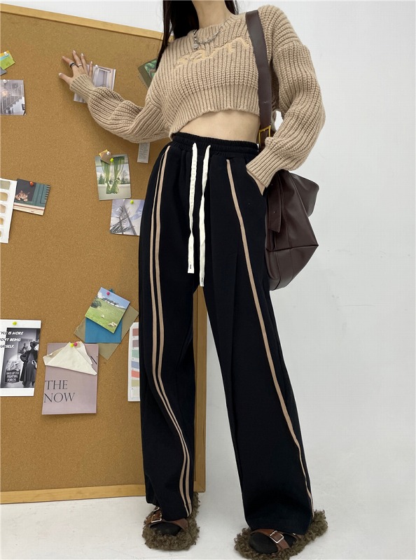 全2色 パンツ ズボン ウエストゴム 切り替え 体型カバー ヴィンテージ風 レトロ調 原宿系ファッション 韓国風 ダンス 衣装 ダンサー ヒップホップ HIPHOP 個性 奇抜 かわいい 青文字系 ボ