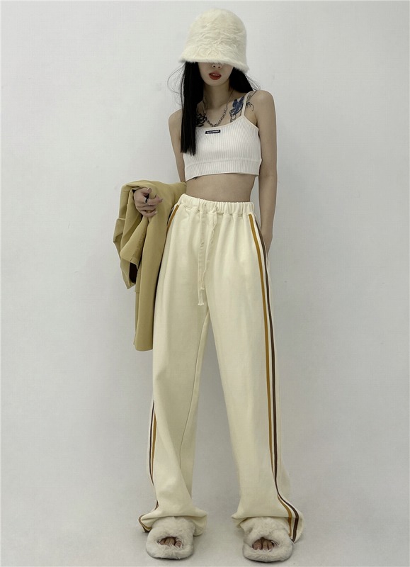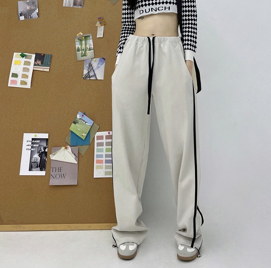 パンツ ズボン 切り替え バイカラー 配色 体型カバー ヴィンテージ風 レトロ調 原宿系ファッション 韓国風 ダンス 衣装 ダンサー ヒップホップ 個性 奇抜 かわいい 青文字系 ボトム