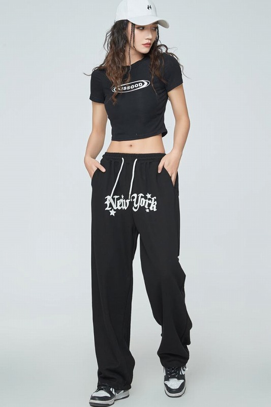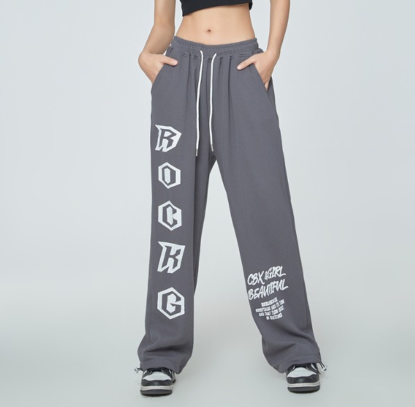 全2色 パンツ ズボン ハイウエスト ウエストゴム 切り替え 体型カバー 原宿系ファッション 韓国風 ダンス 衣装 ダンサー ヒップホップ 個性 奇抜 かわいい 青文字系 ボトムス レデ