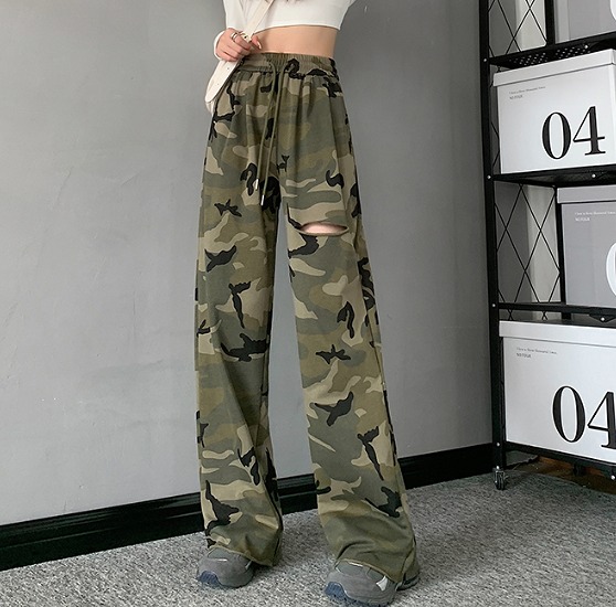 全3色 パンツ ズボン ハイウエスト 切り替え バイカラー 配色 体型カバー カモフラ 迷彩 ミリタリー 大きいサイズあり 原宿系ファッション 韓国風 ダンス 衣装 ダンサー ヒップホップ