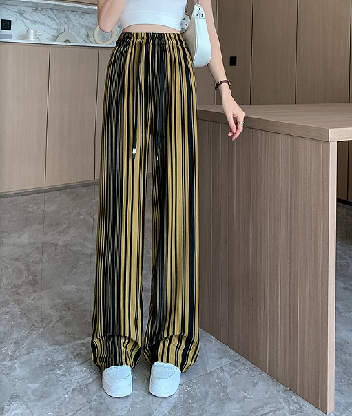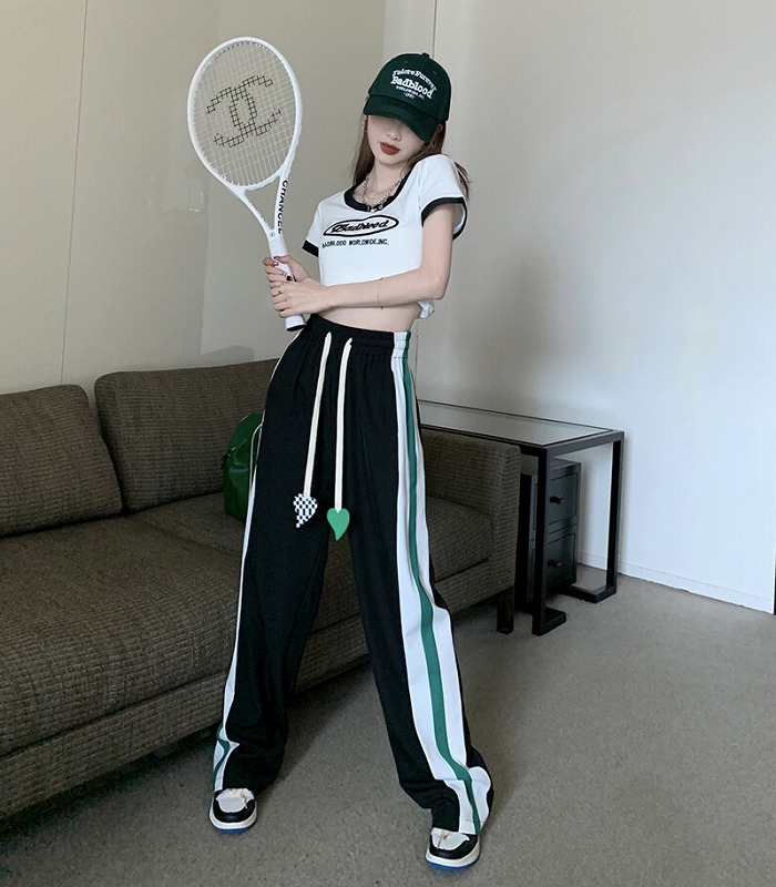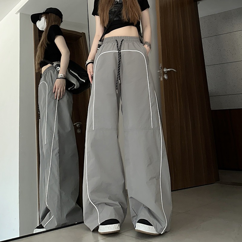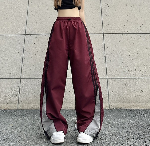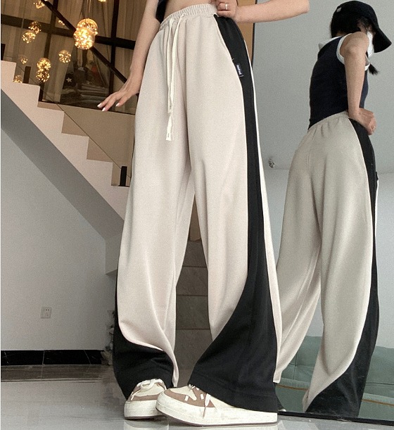 全2色 パンツ ズボン 薄手 ハイウエスト 切り替え バイカラー 配色 ボーダー柄 ストライプ柄 ライン 体型カバー 大きいサイズあり 原宿系ファッション 韓国風 ダンス 衣装 ダンサー ヒップホップ