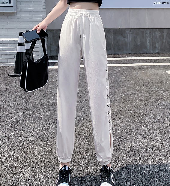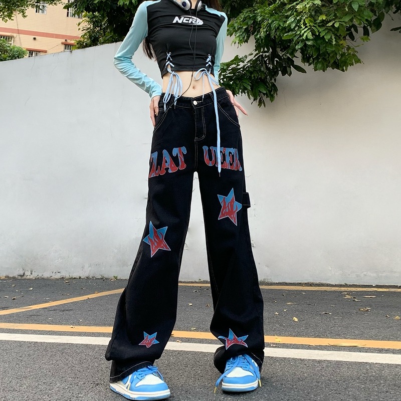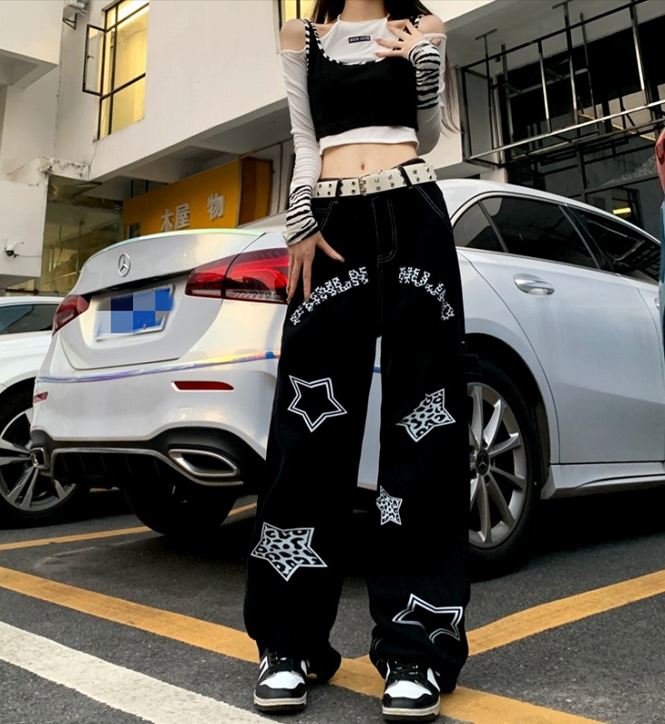 パンツ ズボン プリント スリット ハイウエスト 体型カバー 大きいサイズあり 原宿系ファッション 韓国風 ダンス 衣装 ダンサー ヒップホップ 個性 奇抜 かわいい 青文字系 ボトムス