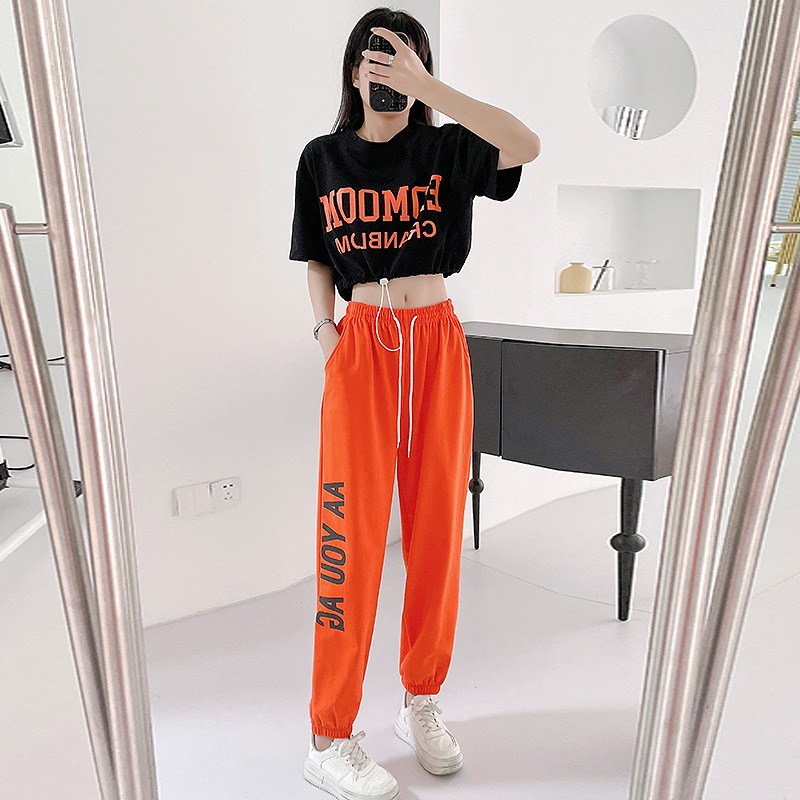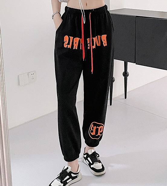 パンツ ズボン ウエストゴム 切り替え 体型カバー ロゴ 英字 ヴィンテージ風 レトロ調 大きいサイズあり 原宿系ファッション 韓国風 ダンス 衣装 ダンサー ヒップホップ 個