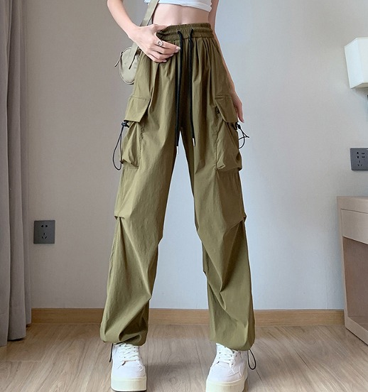 ♪M-2XL展開♪パンツズボンボトムスジャージスウェットゴムハイウエストロングワイド太いストレート大きいサイズビッグゆったりジョガーパンツ絞りカーキダンス衣装ヒップホップHIPHOPレディースメンズ