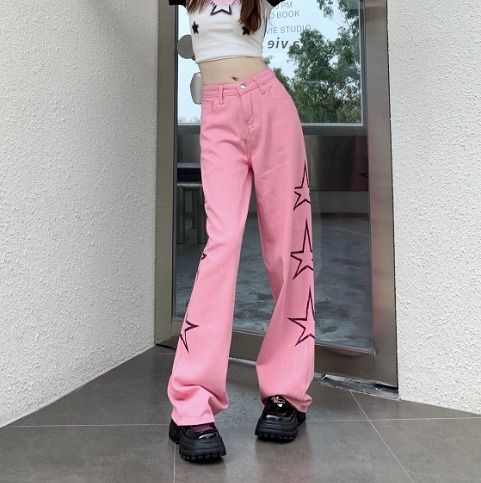 ♪S-XL展開♪星柄パンツズボンボトムスピンクポケットデニムダンス衣装ヒップホップHIPHOPレディースメンズガールズストリート大きいサイズ