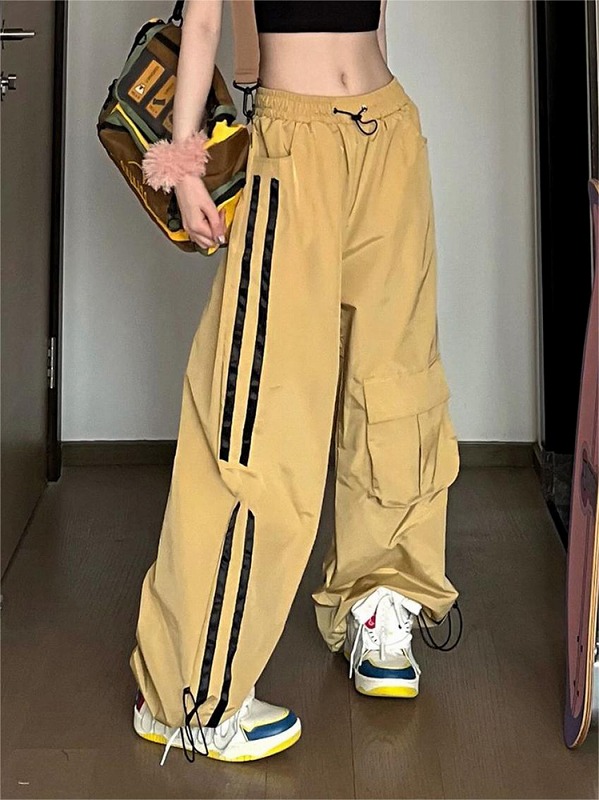 ♪S-XL展開♪ラインパンツズボンボトムスジャージスウェット黄色絞りハイウエストロングワイド太いストレート大きいサイズビッグゆったりジョガーパンツダンス衣装ヒップホップHIPHOPレディースメンズ
