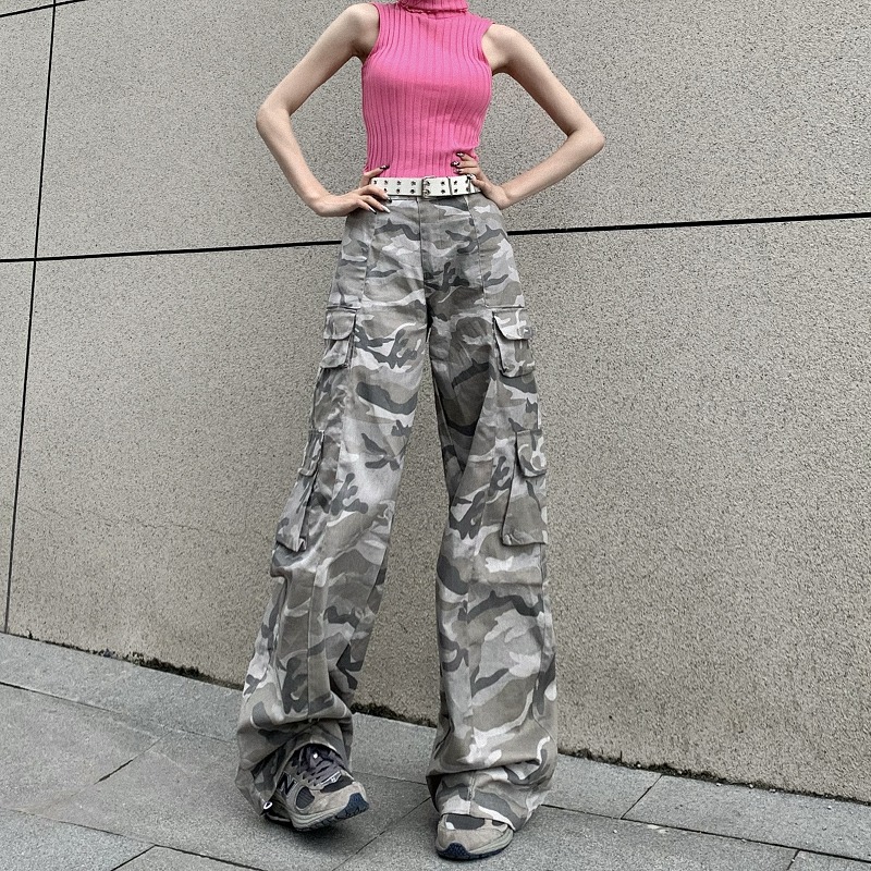 ♪S-2XL展開♪迷彩パンツズボンボトムスジャージスウェットハイウエストロングワイド太いストレート大きいサイズビッグゆったりジョガーパンツグレーダンス衣装ヒップホップHIPHOPレディースメンズ