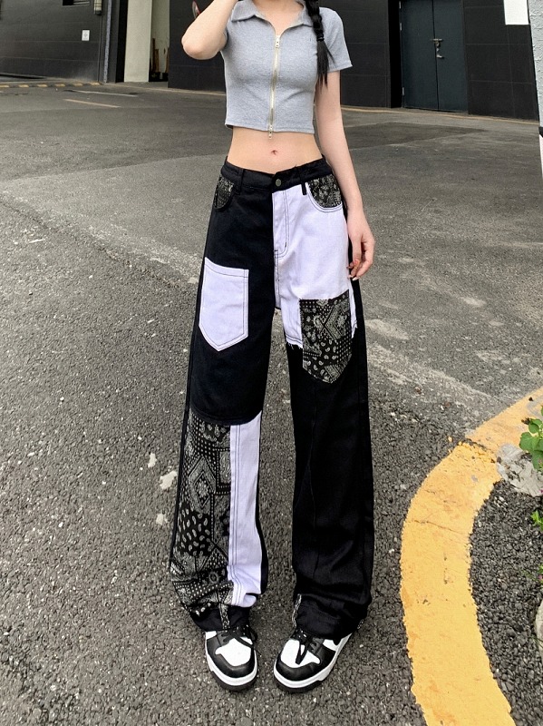 パンツ ズボン プリント 切り替え 体型カバー ヒップホップ 大きいサイズあり 原宿系ファッション 韓国風 ダンス 衣装 ダンサー ヒップホップ 個性 奇抜 かわいい 青文