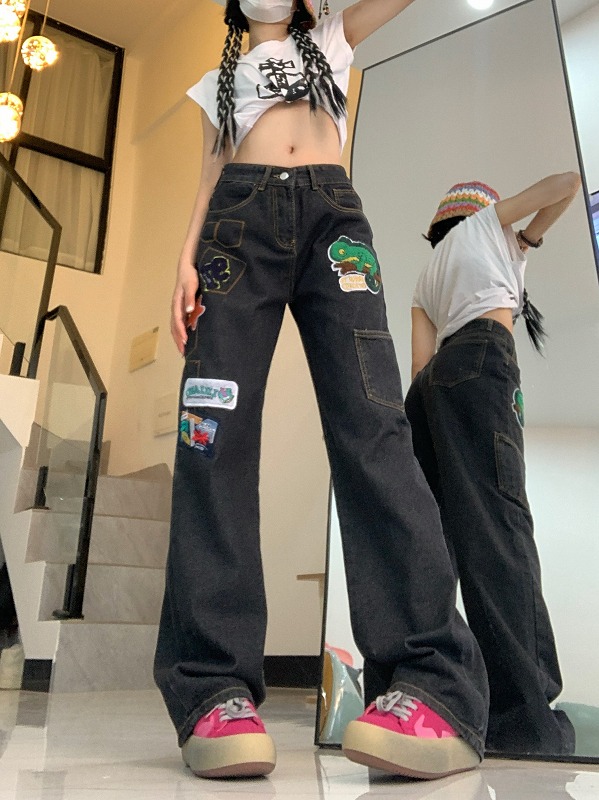 ♪S-2XL展開♪ワッペン星柄ジーンズジーパン レディースファッション ボトムス パンツ