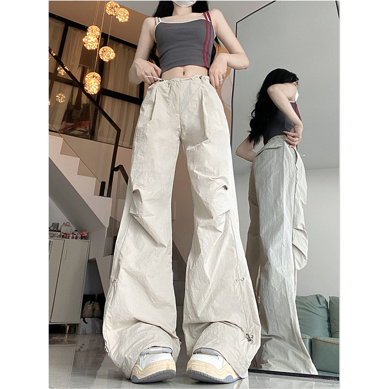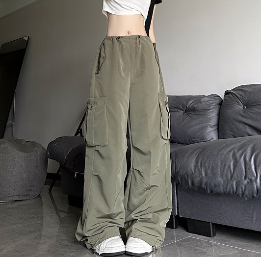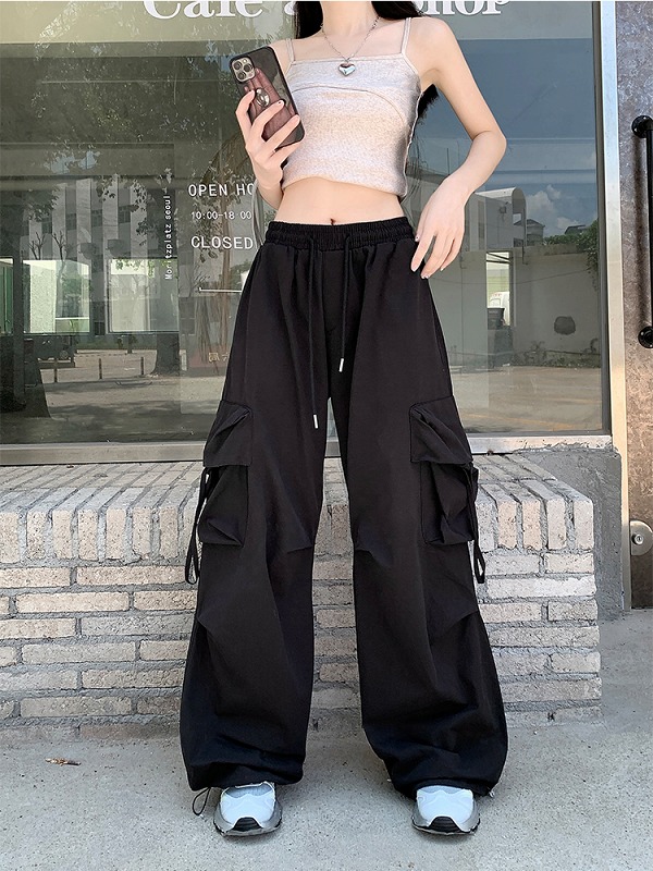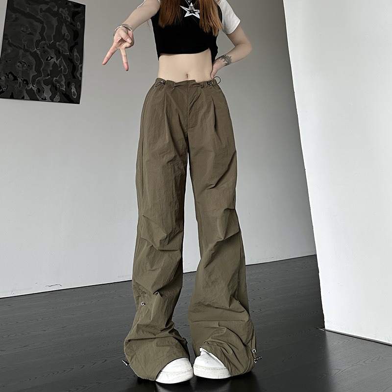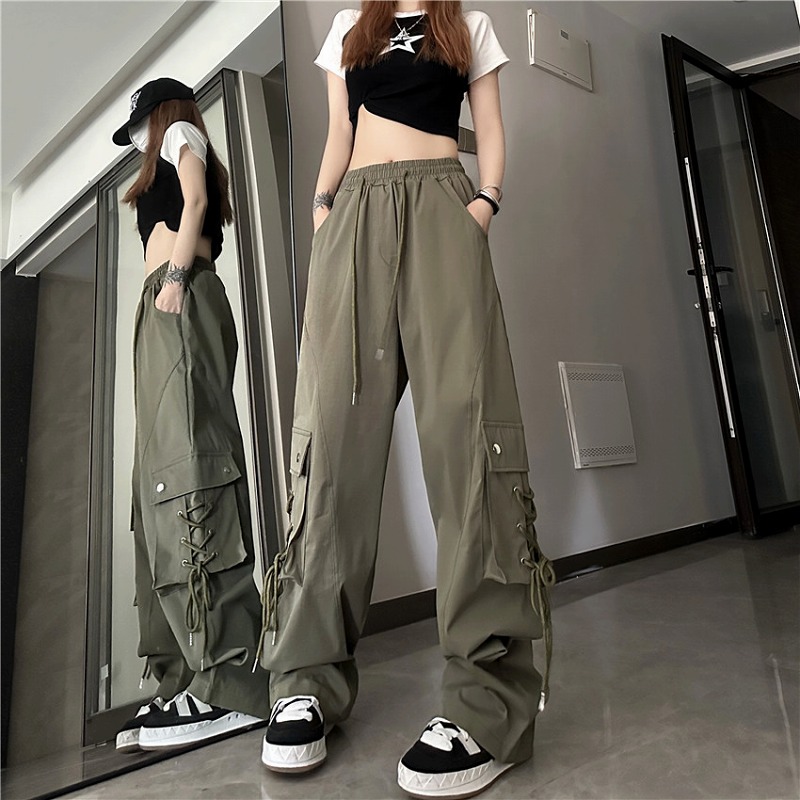 全2色 ♪S-XL展開♪ジャージスウェットパンツズボンボトムスブラックカーキレースアップゴムハイウエストロングストレートゆったりダンス衣装ガールズストリート韓国おしゃれ可愛い大きいサイズ奇抜