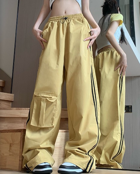 ♪S-XL展開♪ジャージスウェットラインパンツズボンボトムス黄色イエローゴムハイウエストロングストレートゆったりダンス衣装ヒップホップHIPHOPレディースメンズガールズストリート韓国おしゃれ可愛い大