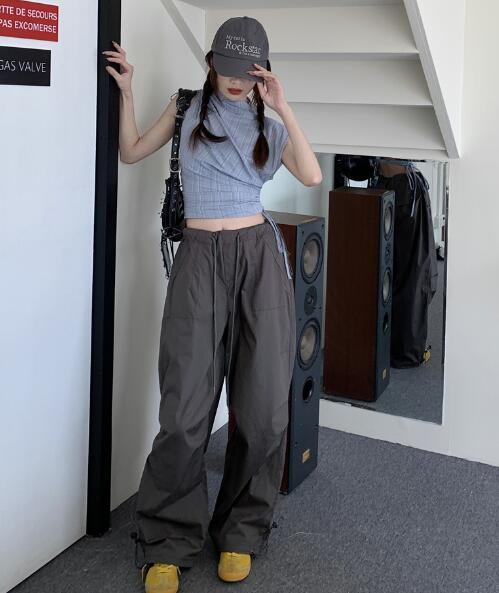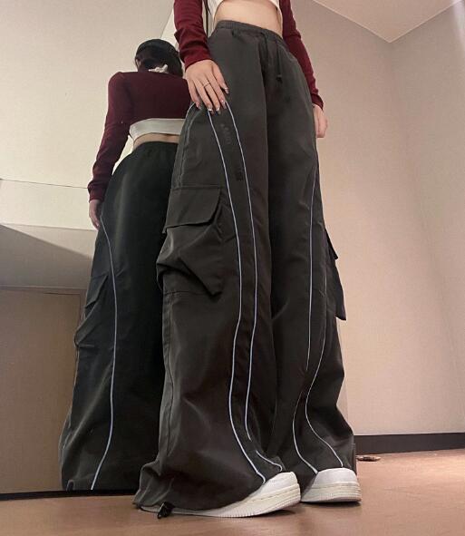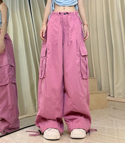 ♪S-L展開♪ワイドカーゴパンツ3色ズボンボトムスパンツジャージハイウエストロングジョガーパンツ無地シンプル大きいサイズゆったりだぼだぼダンス衣装ヒップホップHIPHOPレディースメンズストリート奇抜