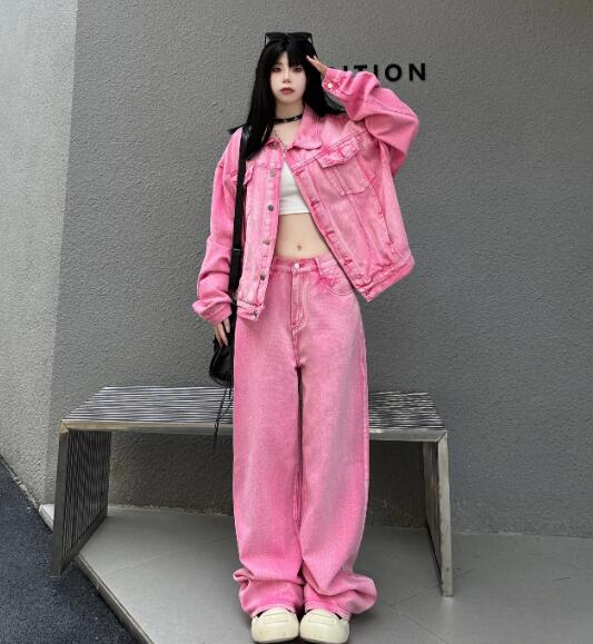 ♪M-XL展開♪ジーンズジーパン パンツズボンボトムスピンク無地ウォッシュ系ジッパーポケットデニムダンス衣装ヒップホップHIPHOPレディースメンズガールズストリート大きいサイズかっこいい個性的