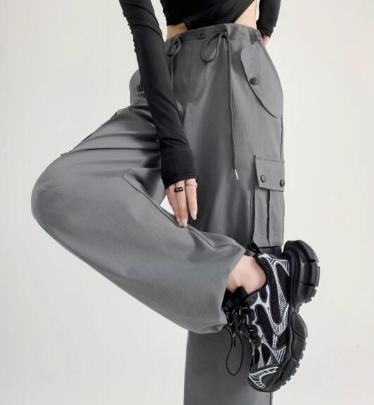 ワイドカーゴパンツズボンボトムスパンツハイウエスト絞りロングジョガーパンツ無地シンプル大きいサイズゆったりだぼだぼダンス衣装ヒップホップHIPHOPレディースメンズストリート奇抜派手