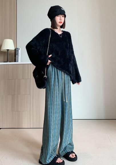 ストライプ柄パンツズボンボトムススウェット ロングワイド太い太め大きいサイズビッグゆったりハイウエストポケットダンス衣装ヒップホップレディースガールズ個性的奇抜