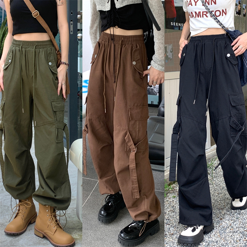 ♪S-XL展開♪カーゴパンツジーンズジーパン パンツズボンボトムスポケットブラック黒デニムダンス衣装ヒップホップHIPHOPレディースメンズガールズストリート大きいサイズかっこいい個性的韓国ファッショ