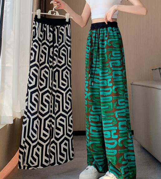 ♪S~2XL展開 ♪総柄ズボンボトムスパンツブラックグリーンゆったりシンプルゴムハイウエストダンス衣装ヒップホップHIPHOPレディースガールズストリート大人薄手 涼感