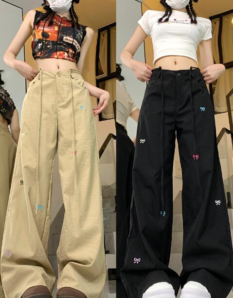 ちょうちょう刺繍パンツズボンボトムススウェットロングワイド太い太め大きいサイズビッグジャージ ゆったりハイウエストポケットダンス衣装ヒップホップレディースガールズ個性的奇抜かっこいい