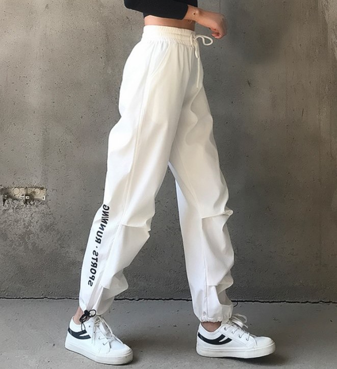 ロゴパンツ2色ジャージボトムスズボンロングゴムシンプルホワイトブラックダンス衣装ヒップホップレディースメンズガールズストリートジョガーパンツ動きやすい運動黒白スポーツ韓国ハイウエスト