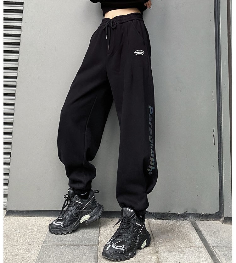 ロゴパンツ2色ジャージボトムスズボンロングゴムシンプルホワイトブラックダンス衣装ヒップホップHIPHOPレディースメンズガールズストリートジョガーパンツ動きやすい運動黒白スポーツ韓国ハイウエスト