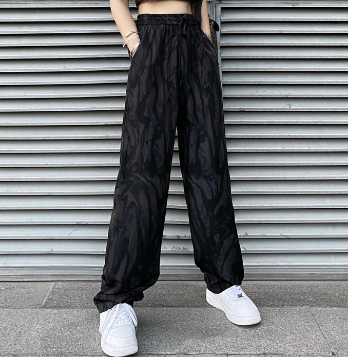 タイダイ柄パンツ2色ズボンボトムスジャージ服下ゴムロングストレートハイウエストマーブルダンス衣装ヒップホップHIPHOPレディースメンズガールズストリートワイド大人運動総柄奇抜派手黒白韓国かっこいい