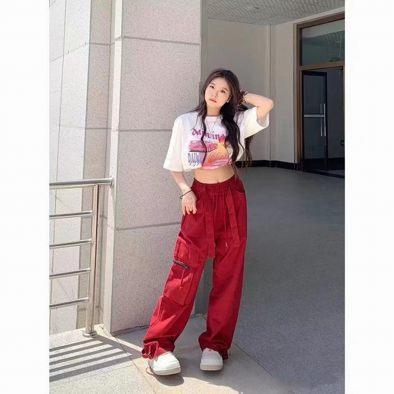 ♪~展開♪カーゴパンツデニムズボンボトムスパンツジーンズジーパンストレート刺繍ピンクシンプルピンクダンス衣装ヒップホップレディースガールズストリート奇抜派手韓国ビッグ大きいサイズ