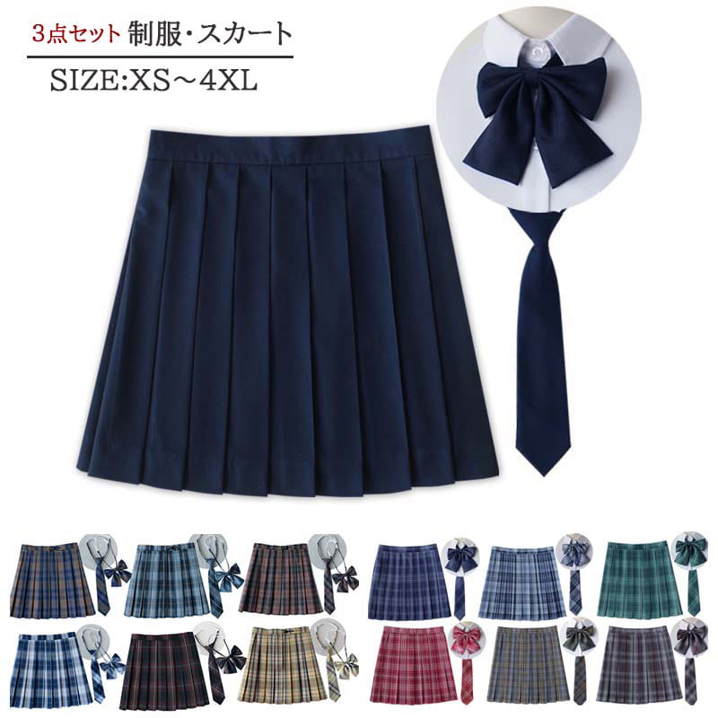 3点セット スカート ネクタイ ボウタイ 制服 スカート チェック 大きいサイズ スクールスカート プリーツスカート ギンガムチェック 学生服 女子高生 制服 コスプレ セーラー服 高校生 中学生 お
