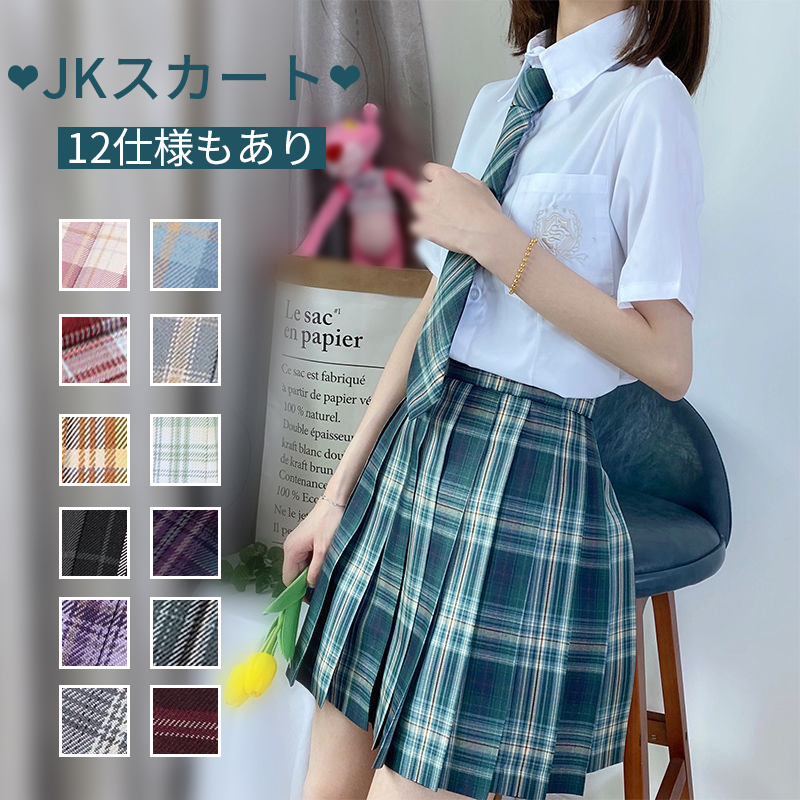 プリーツスカート JK 3点セット チェック柄 ミニ スクールスカート 制服 学生服 女子校生 かわいい 子供 大人 半袖`長袖シャツ