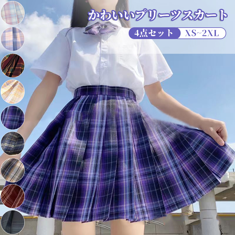 プリーツスカート 4点セット チェック柄 ミニ スクールスカート 制服 学生服 女子校生 かわいい ハイカット付き