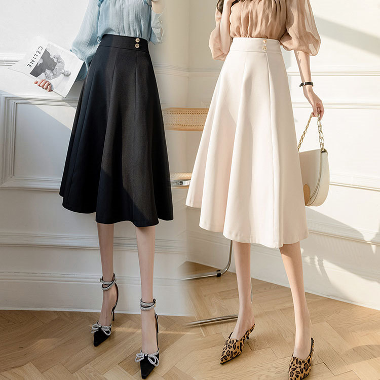 スカート Aライン 春秋 レディース ミモレ丈 体型カバー 優雅 ナチュラル 大人 洋装 上品 きれいめ お出かけ ハイウェスト ベーシック ブラック ベージュ BQ-075