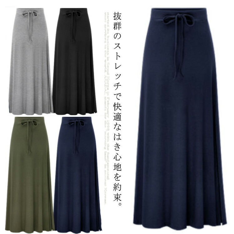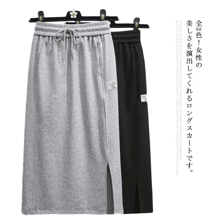 ロングスカート レディース コットン マキシ丈 ボトムス スリット入り 部屋着 楽ちん お出かけ 大きいサイズ 秋物 お洒落
