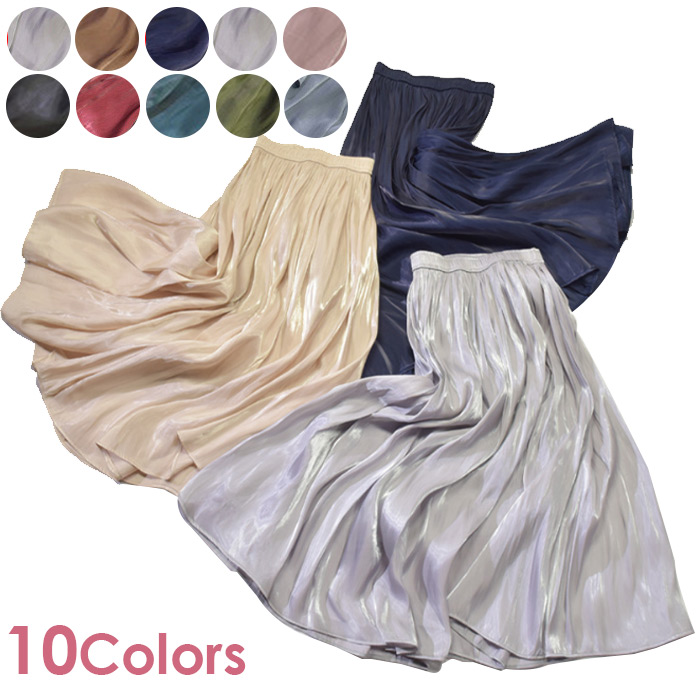 レデイース カラースカート ウエストゴム 30代 40代 ファッション ミモレ丈 暑い夏も涼しく快適 シフォンマキシスカート皺になりにくい