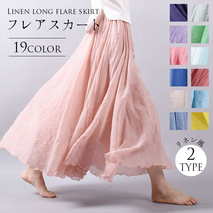 新入荷 フレアスカート 綿麻混 マキシスカート ロングスカート レディース リネン ふんわり ふわり レデイース スカート 裏地あり