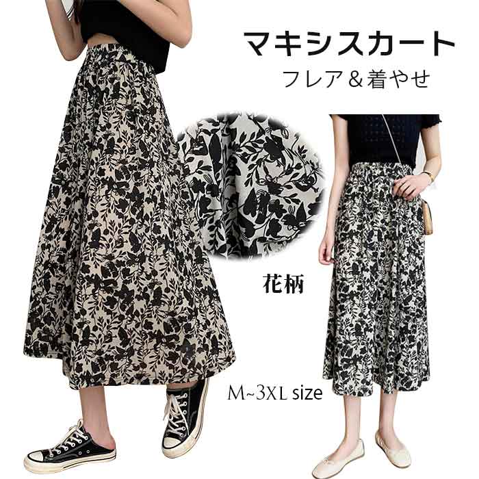 愛されコーデ 美シルエット 体型カバー 動きやすい 春 夏 秋 シフォンマキシスカート皺になりにくい