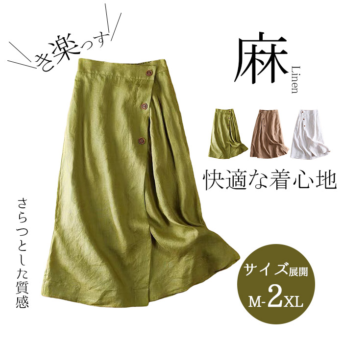 ミモレ丈のリネンスカート 暑い夏も涼しく快適 ベーシックの配色で簡単にコーデ完成 オフィス サマー きれいめ 体型カバー 清楚 手洗い 着まわし
