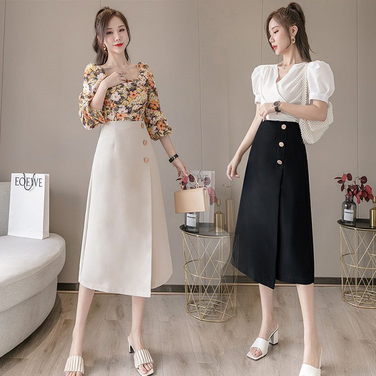 スカート ライン 春秋 レディース ミモレ丈 体型カバー 優雅 ナチュラル 大人 洋装 パーティー ファッション結婚式 二次会 同窓会 上品 きれいめ お出かけ 花柄 着やせ ブルー イエロー