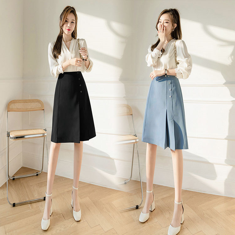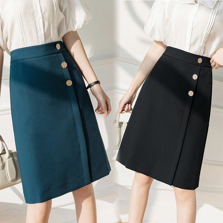 スカート ライン 春秋 デニム レディース ミモレ丈 体型カバー パーティー ファッション 同窓会 上品 きれいめ お出かけ ハイウェスト ベーシック 普段着 カジュアル -068