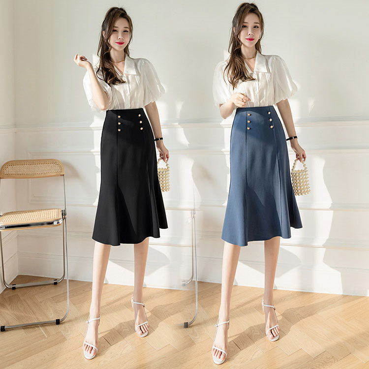 スカート ライン 春秋 レディース ミモレ丈 体型カバー 優雅 ナチュラル 大人 洋装 パーティー ファッション 結婚式 二次会 同窓会 上品 きれいめ お出かけ ブラック ブルー マーメイドスカー