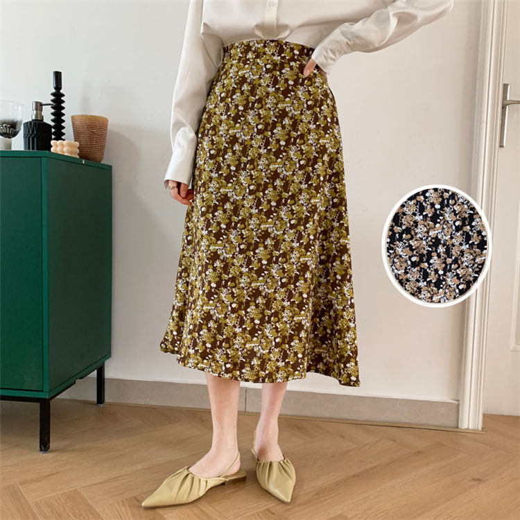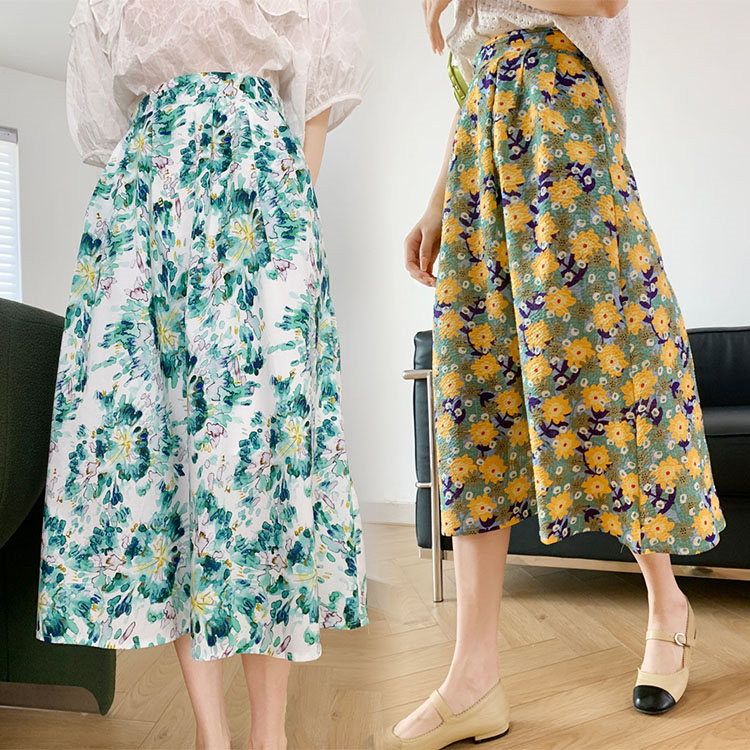 スカート Aライン 春秋 レディース ミモレ丈 体型カバー 優雅 ナチュラル 大人 洋装 パーティー ファッション結婚式 二次会 同窓会 上品 きれいめ お出かけ 花柄 着やせ ブルー イエロー BQ